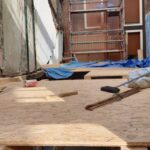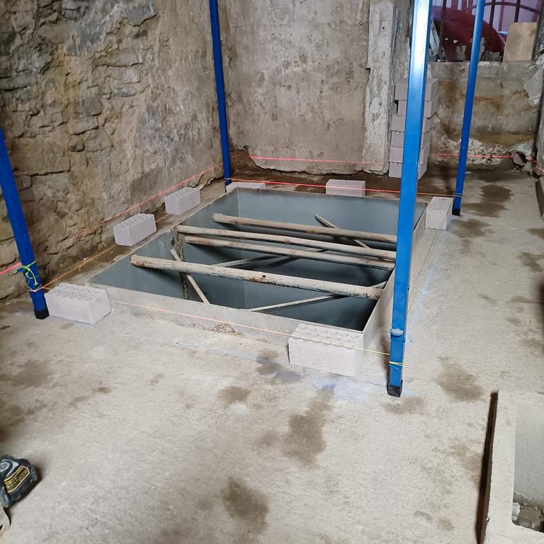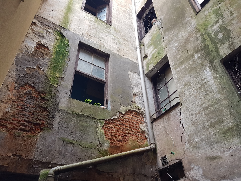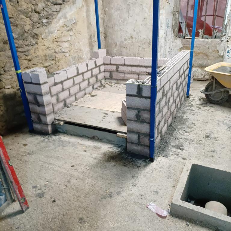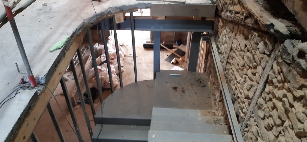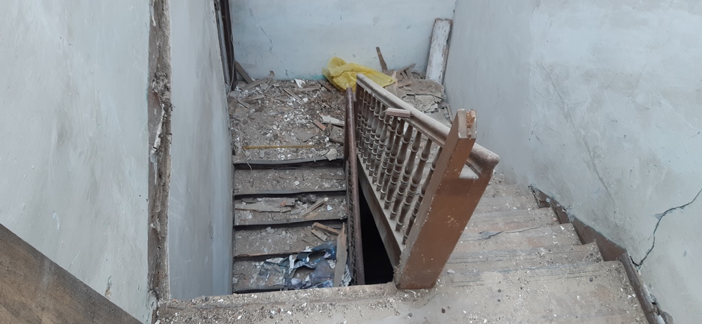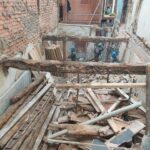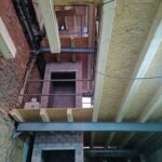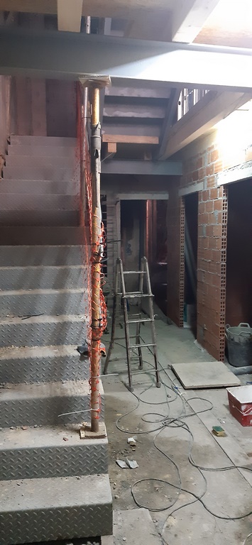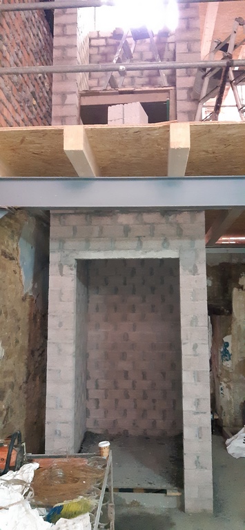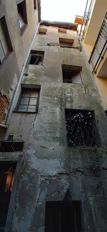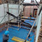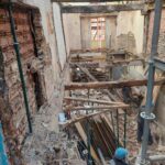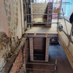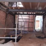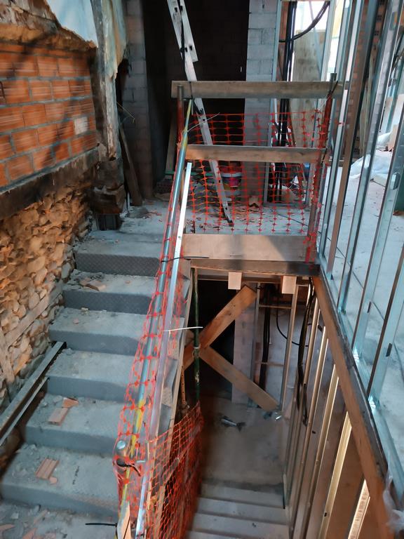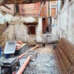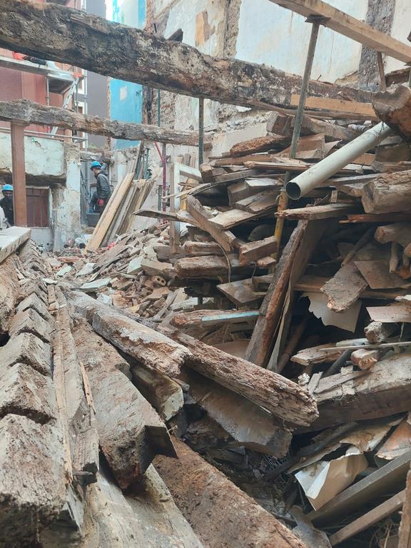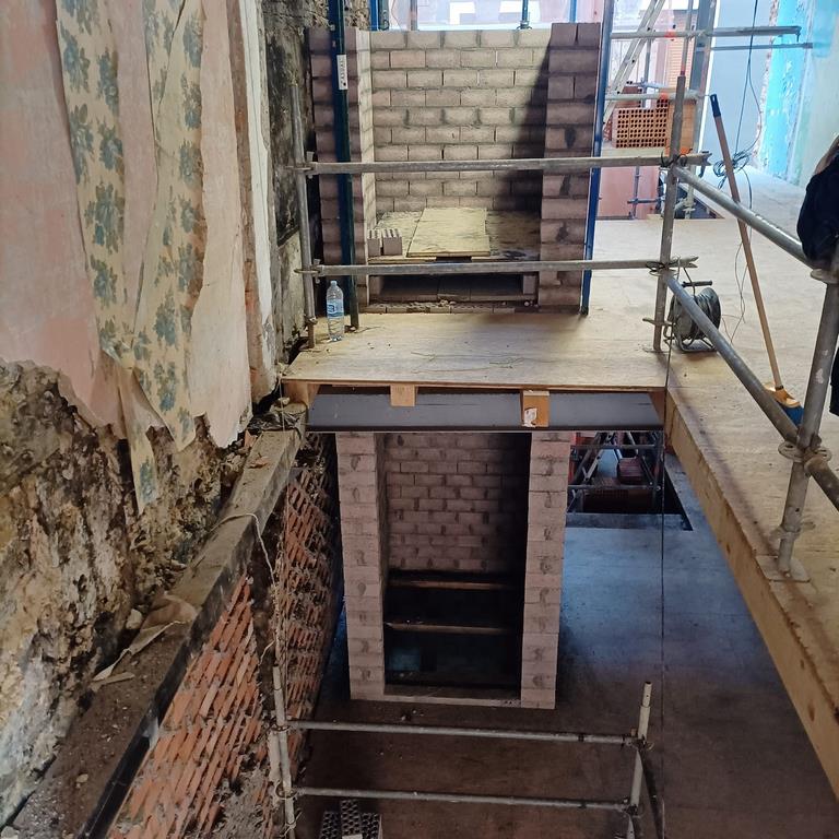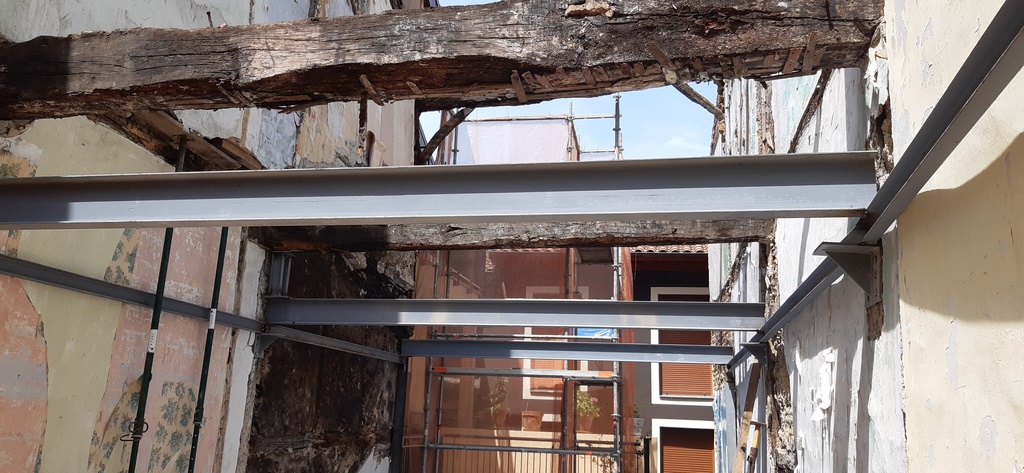Para la realizacion de este proyecto se procede al vaciado del edificio y derrumbe da gran parte de la fachada y estructura oprobechando los elementos que estan en buen estado
