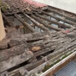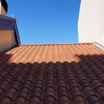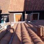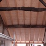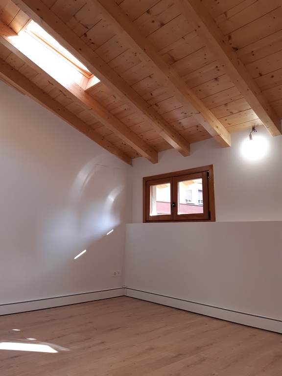 La cubierta se ha ejecutado mediante forjados y vigas de madera barnizada ejecutando el acabado exterior con teja mixta envejecida con un aislamiento termico de 10 cm de espesor con lamina impermeable y paravapor.
