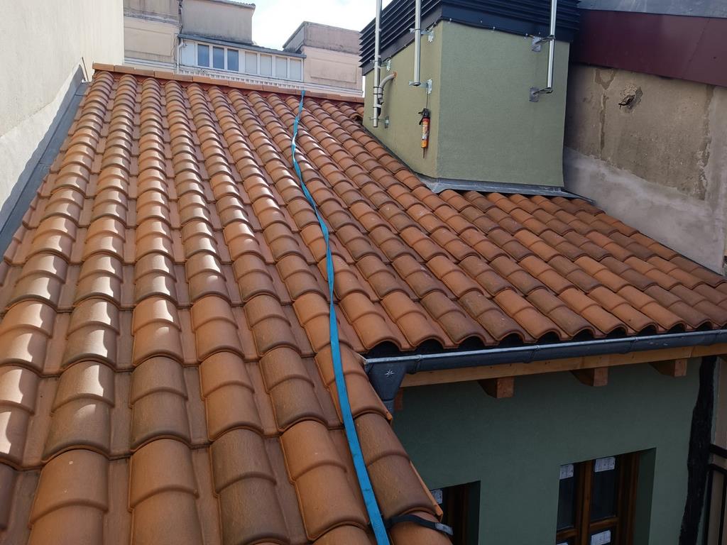 Los canalones y bajantes son de zinc cumpliendo asi las normas urbanisticas garantizando una larga durabilidad.